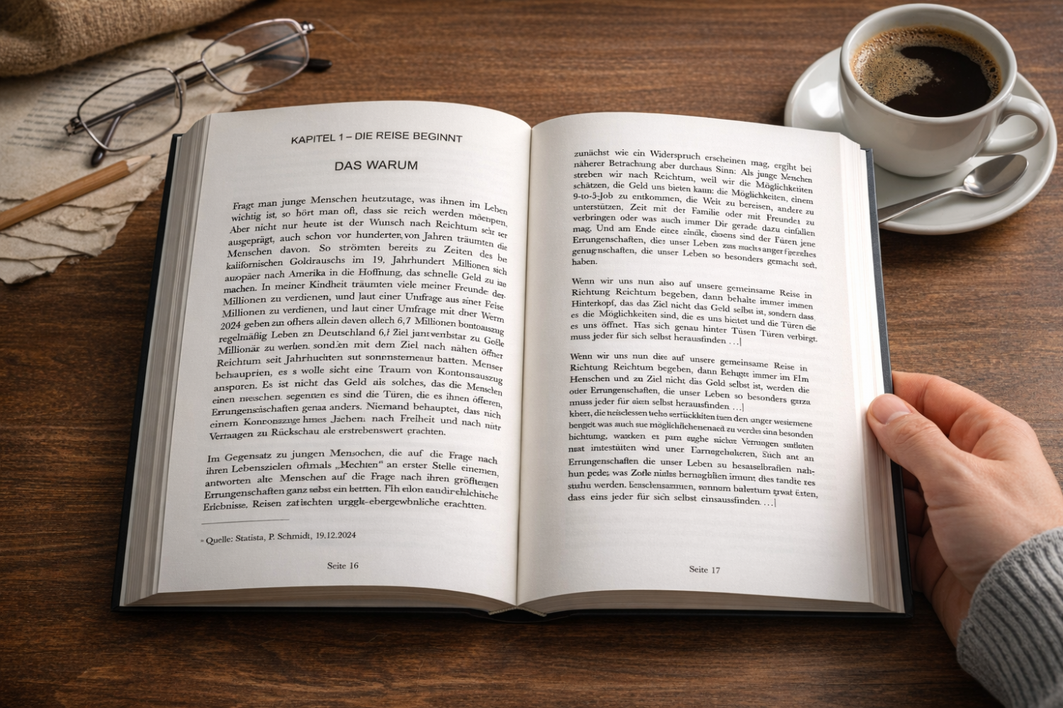 Im Gegensatz zu jungen Menschen, die auf die Frage nach ihren Lebenszielen oftmals „Reichtum“ an erster Stelle nennen, antworten alte Menschen auf die Frage nach ihren größten Errungenschaften ganz anders. Niemand behauptet, dass sein Vermögen die größte Errungenschaft sei, wenn er auf sein Leben zurückblickt. Stattdessen sind es außergewöhnliche Erlebnisse, Reisen, die Familie und gute Freundschaften, die wir in der Rückschau als erstrebenswert erachten. Was zunächst wie ein Widerspruch erscheinen mag, ergibt bei näherer Betrachtung aber durchaus Sinn: Als junge Menschen streben wir nach Reichtum, weil wir die Möglichkeiten schätzen, die Geld uns bieten kann: die Möglichkeiten, einem 9-to-5-Job zu entkommen, die Welt zu bereisen, andere zu unterstützen, Zeit mit der Familie oder mit Freunden zu verbringen oder was auch immer Dir gerade dazu einfallen mag. Und am Ende eines erfüllten Lebens sind es genau jene Errungenschaften, die unser Leben so besonders gemacht haben.